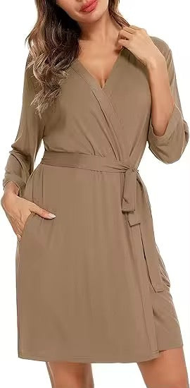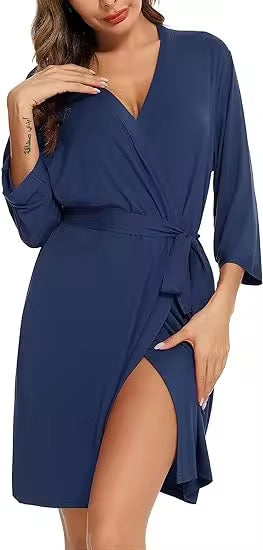 Stay cozy with our organic bamboo robe. Perfect for just lounging at home or breastfeeding, it offers a touch of elegance and ultimate softness for you.